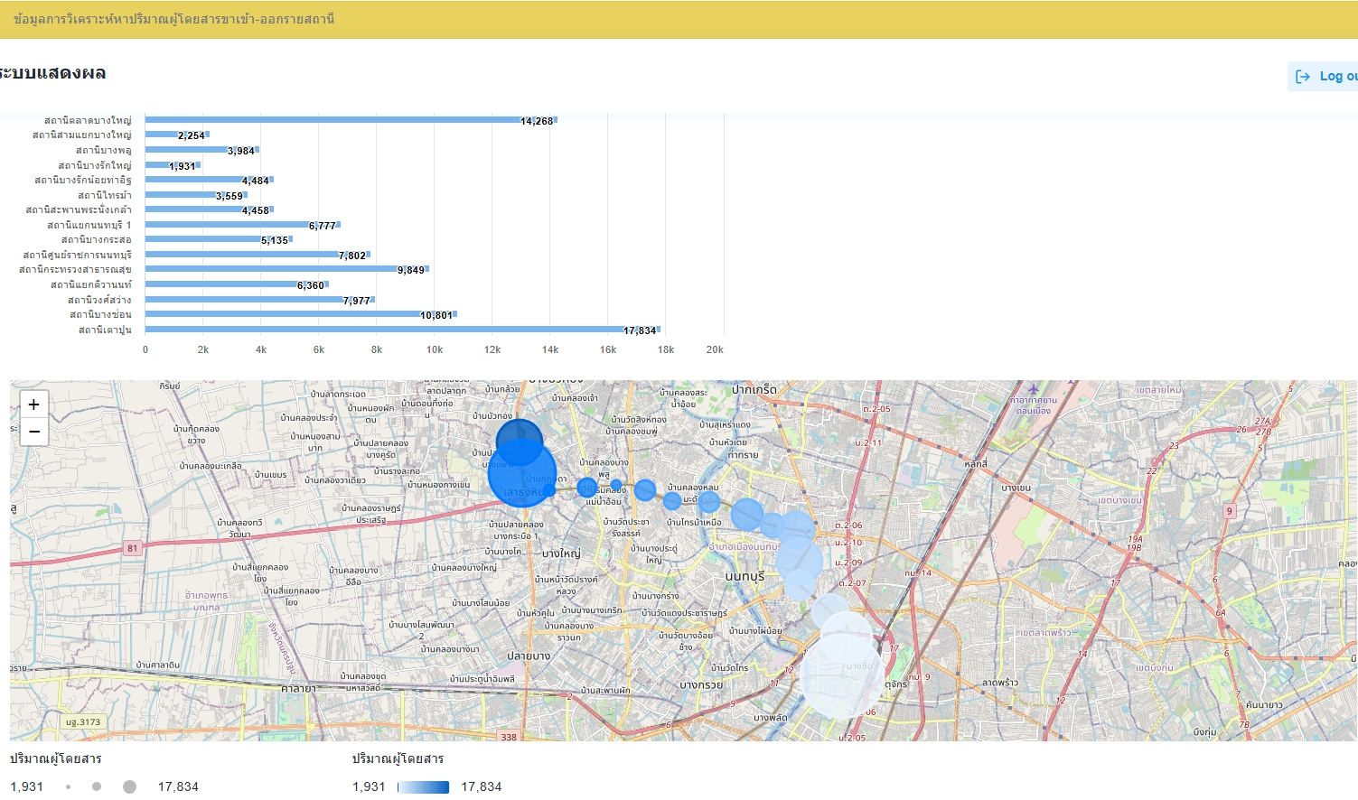 - การพัฒนาระบบวิเคราะห์การเดินทางของผู้ใช้รถไฟฟ้าจากบัตร smartcard (วิเคราะห์ต้นทางปลายทางการเดินทางของผู้ใช้รถไฟฟ้า ระยะการเดินทางเฉลี่ย ค่าใช้จ่ายในการเดินทางเฉลี่ย จำนวนผู้โดยสารบนขบวนรถในแต่ละช่วงทาง เป็นต้น)