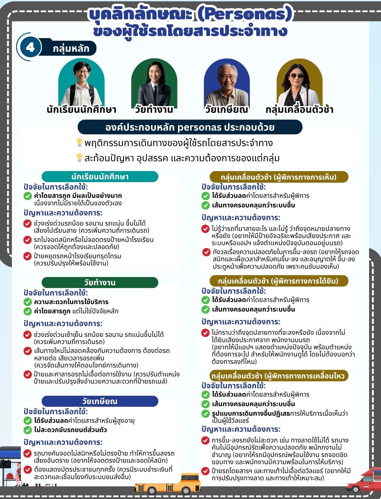 - การจัดทำ Personas และ User Journey Mapping ของผู้ใช้รถโดยสารประจำทาง